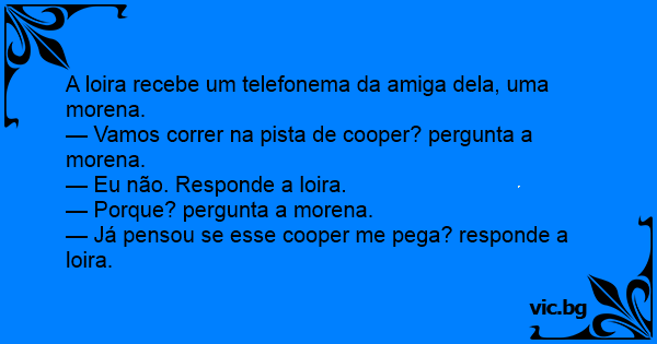 — Já pensou se esse cooper me pega? responde a loira.