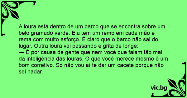 — É por causa de gente que nem você que falam tão mal da inteligência das louras. O que você merece mesmo é um bom corretivo. Só não vou aí te dar um сасете porque não sei nadar.