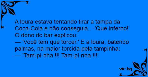A loura estava tentando tirar a tampa da Coca-Cola e não conseguia.. -'Que inferno!' O dono do bar explicou: