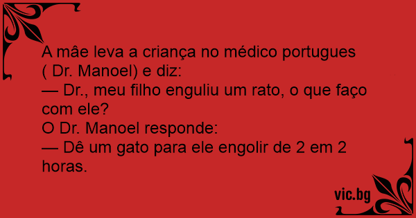 A mâe leva a criança no médico portugues ( Dr. Manoel) e diz: