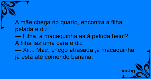 A loira entava no quarto da filha emquanto entava trocando de roupa. E a mãe loira disse para a filha minha filha voçe esta com a macaquinha peluda. E ai a filha responde. Mãe voçe esta por fora...