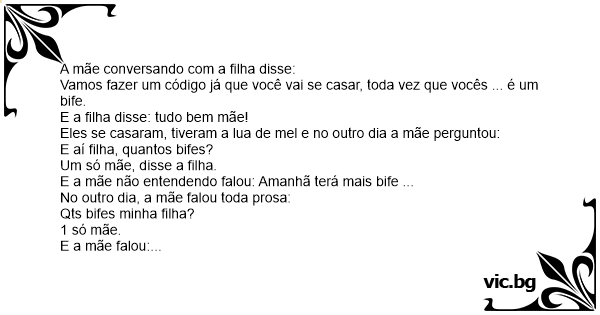 E a mãe não entendendo falou: Amanhã terá mais bife ...