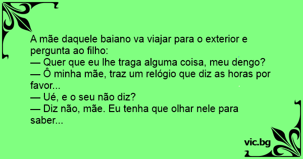 A mãe daquele baiano va viajar para o exterior e pergunta ao filho:
