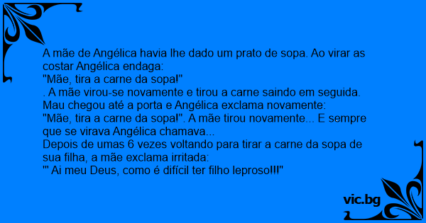 A mãe de Angélica havia lhe dado um prato de sopa. Ao virar as costar Angélica endaga: