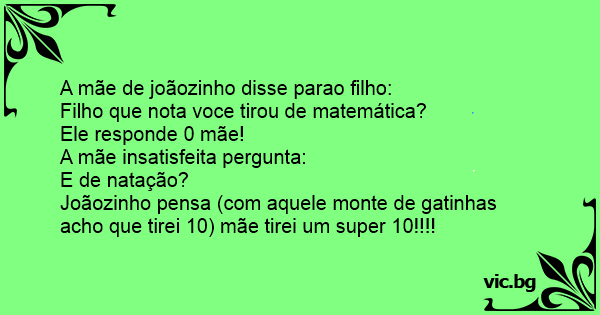 Joãozinho pensa (com aquele monte de gatinhas acho que tirei 10) mãe tirei um super 10!!!!