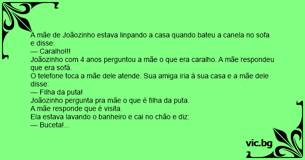 A mãe de Joãozinho estava linpando a casa quando bateu a canela no sofa e disse: