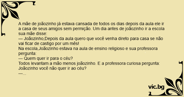 Todos levantam a mão menos joãozinho. E a professora curiosa pergunta: