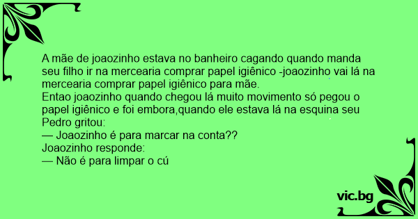 Entao joaozinho quando chegou lá muito movimento só pegou o papel igiênico e foi embora,quando ele estava lá na esquina seu Pedro gritou: