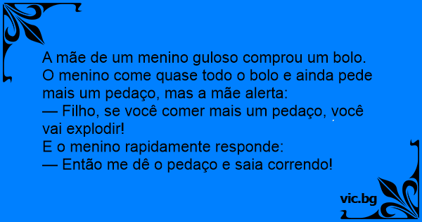 — Filho, se você comer mais um pedaço, você vai explodir!
