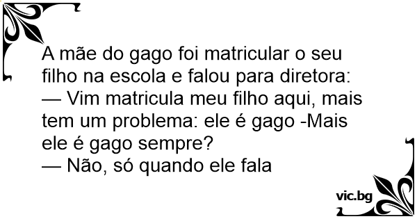 — Vim matricula meu filho aqui, mais tem um problema: ele é gago -Mais ele é gago sempre?