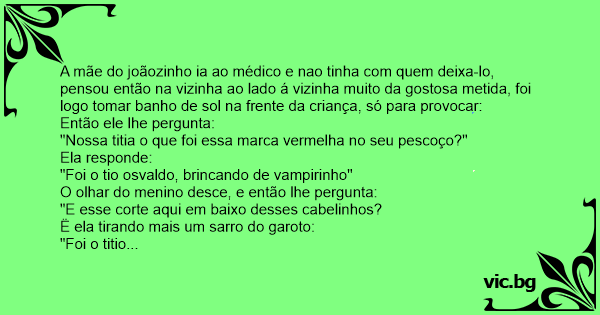 "Nossa titia o que foi essa marca vermelha no seu pescoço?"