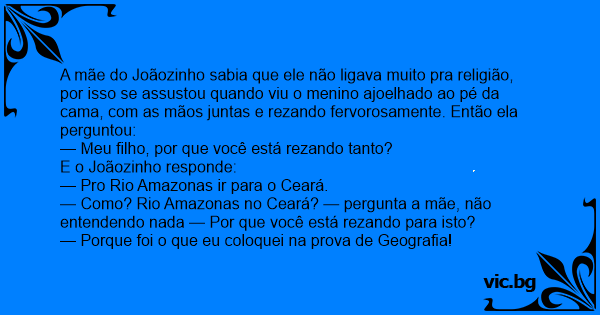 — Como? Rio Amazonas no Ceará? — pergunta a mãe, não entendendo nada — Por que você está rezando para isto?