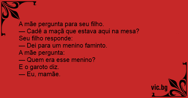 — Cadê a maçã que estava aqui na mesa?