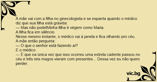 — Mas não pode!Minha filha é virgem como Maria.
