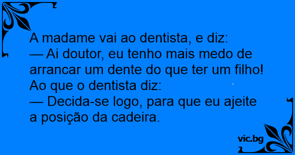 — Ai doutor, eu tenho mais medo de arrancar um dente do que ter um filho!