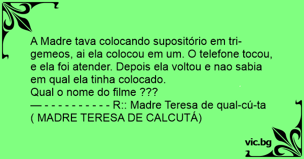A Madre tava colocando supositório em tri-gemeos, ai ela colocou em um. O telefone tocou, e ela foi atender. Depois ela voltou e nao sabia em qual ela tinha colocado.