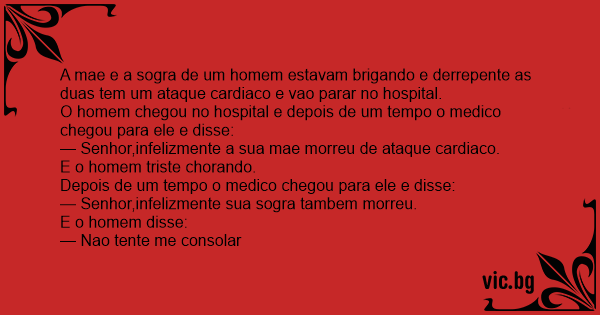 — Senhor,infelizmente a sua mae morreu de ataque cardiaco.