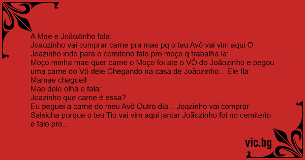Moço minha mae quer carne o Moço foi ate o VÔ do Joãozinho e pegou uma carne do Vô dele Chegando na casa de Joãozinho... Ele fla: