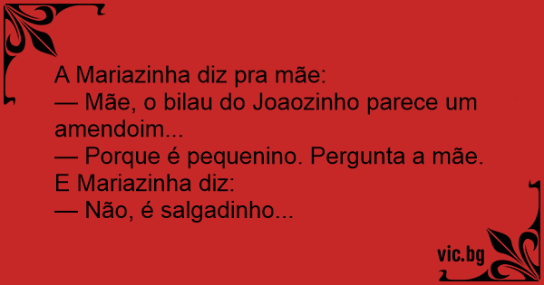 — Mãe, o bilau do Joaozinho parece um amendoim...