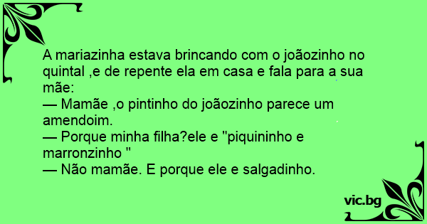 A mariazinha estava brincando com o joãozinho no quintal ,e de repente ela em casa e fala para a sua mãe: