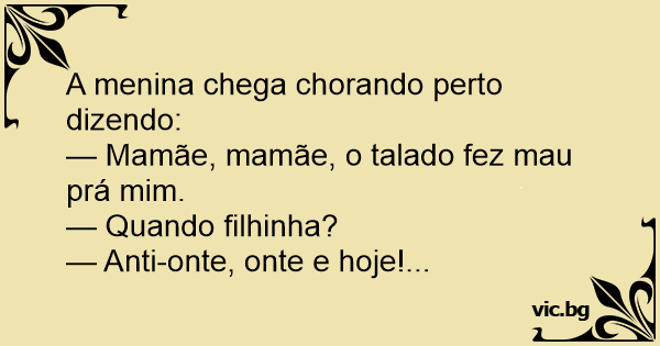 — Mamãe, mamãe, o talado fez mau prá mim.