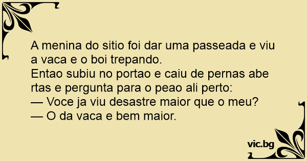 A menina do sitio foi dar uma passeada e viu a vаса e o boi trepando.