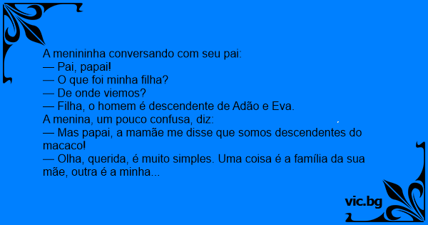 — Mas papai, a mamãe me disse que somos descendentes do macaco!