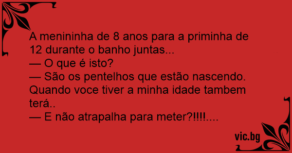 A menininha de 8 anos para a priminha de 12 durante o banho juntas...