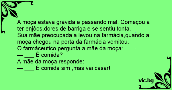 Sua mãe,preocupada a levou na farmácia,quando a moça chegou na porta da farmácia vomitou.