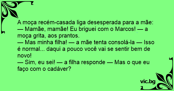 — Sim, eu sei! — a filha responde — Mas o que eu faço com o cadáver?