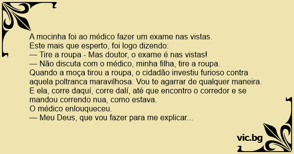 — Tire a roupa - Mas doutor, o exame é nas vistas!