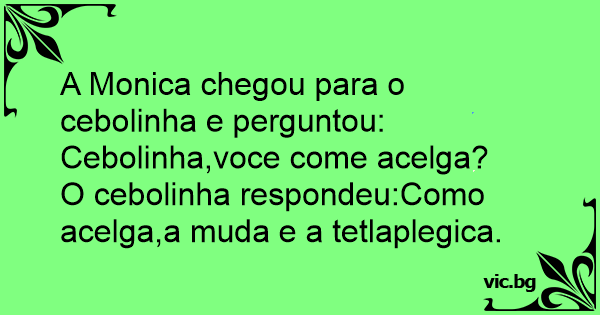 O cebolinha respondeu:Como acelga,a muda e a tetlaplegica.