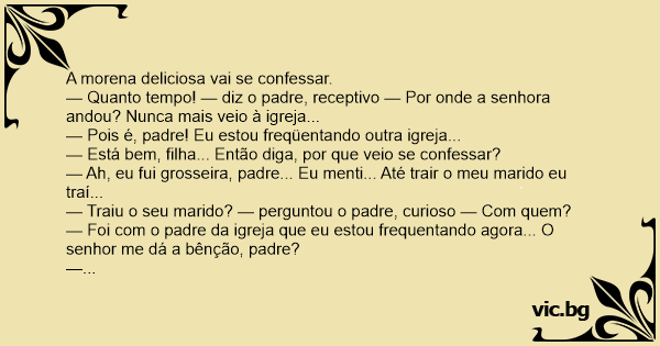 — Ah, eu fui grosseira, padre... Eu menti... Até trair o meu marido eu traí...