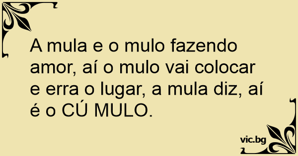 A mula e o mulo fazendo amor, aí o mulo vai colocar e erra o lugar, a mula diz, aí é o CÚ MULO.