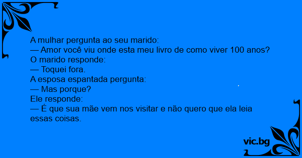 — Amor você viu onde esta meu livro de como viver 100 anos?