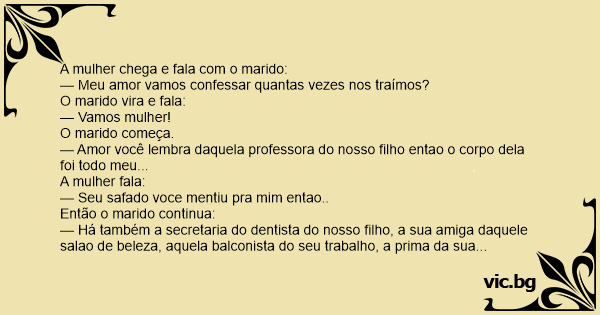 — Meu amor vamos confessar quantas vezes nos traímos?
