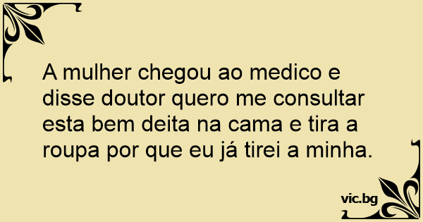 A mulher chegou ao medico e disse doutor quero me consultar esta bem deita na cama e tira a roupa por que eu já tirei a minha.