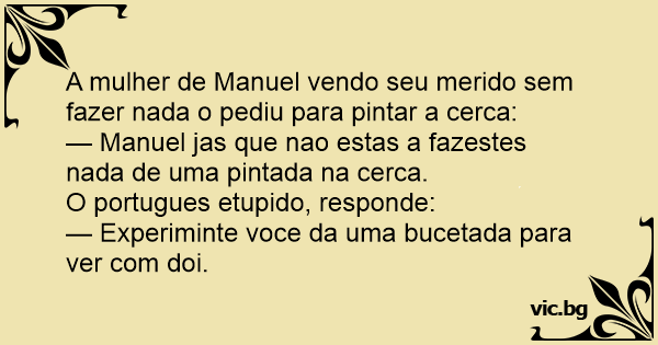 — Manuel jas que nao estas a fazestes nada de uma pintada na cerca.