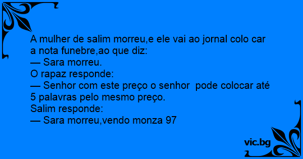 A mulher de salim morreu,e ele vai ao jornal colo car a nota funebre,ao que diz: