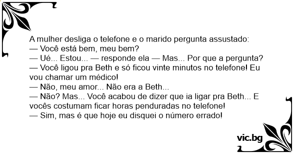 — Ué... Estou... — responde ela — Mas... Por que a pergunta?