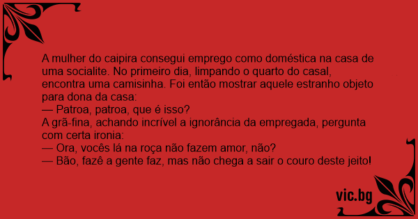 — Ora, vocês lá na roça não fazem amor, não?