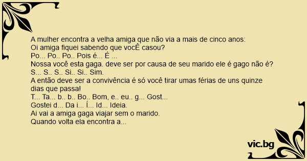 Nossa você esta gaga. deve ser por causa de seu marido ele é gago não é?