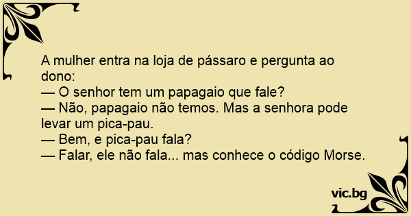 A mulher entra na loja de pássaro e pergunta ao dono: