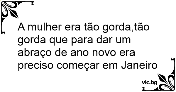 A mulher era tão gorda,tão gorda que para dar um abraço de ano novo era preciso começar em Janeiro