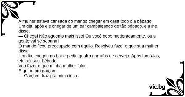 Um dia, chegou no bar e pediu quatro garrafas de cerveja. Após tomá-las, ele pensou, bêbado: