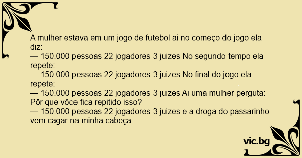 — 150.000 pessoas 22 jogadores 3 juizes Ai uma mulher perguta: