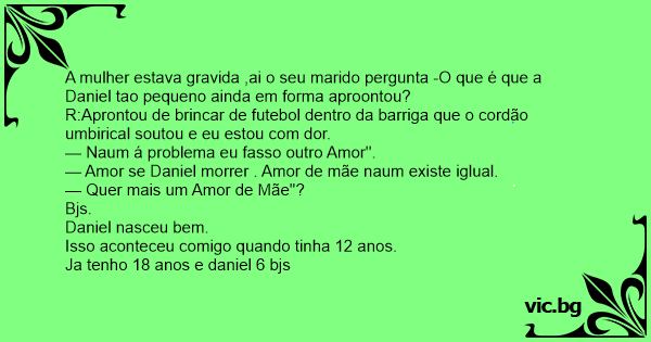 A mulher estava gravida ,ai o seu marido pergunta -O que é que a Daniel tao pequeno ainda em forma aproontou?