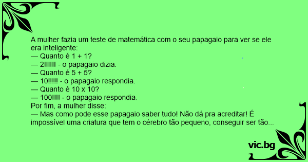 A mulher fazia um теsте de matemática com o seu papagaio para ver se ele era inteligente: