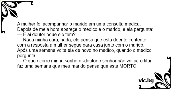 — O que ocorre minha senhora -doutor o senhor não vai acreditar, faz uma semana que meu marido pensa que esta MORTO.