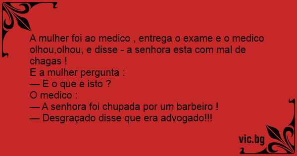 A mulher foi ao medico , entrega o exame e o medico olhou,olhou, e disse - a senhora esta com mal de chagas !